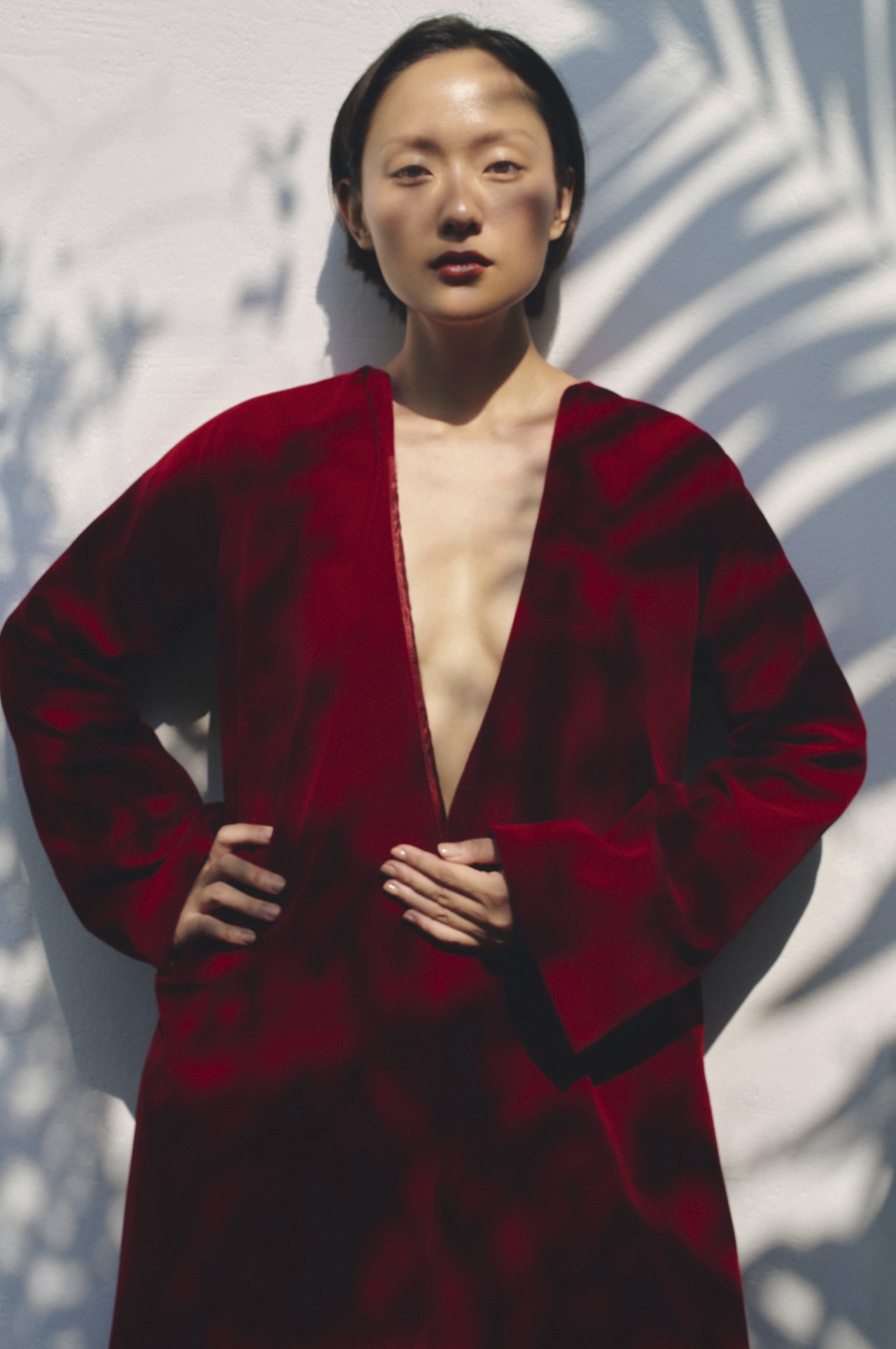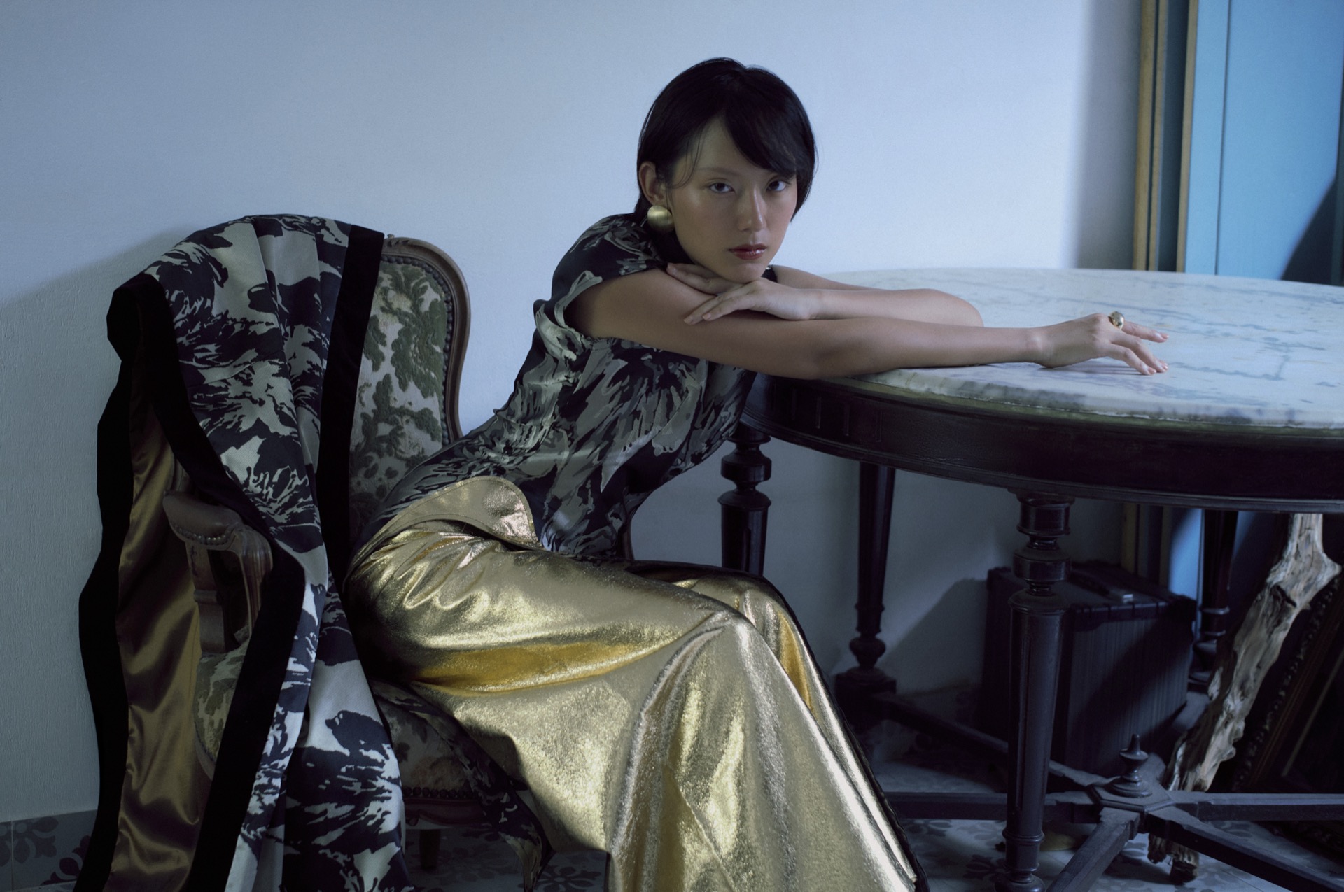 Từng nếp gấp, từng đường rơi của vải được hình thành theo chuyển động của cô.